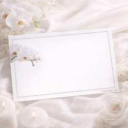 Carte de remerciement décès simple, illustrée de délicates orchidées blanches au cœur pourpre. Cette carte vous aidera à remercier les personnes présentes aux obsèques et qui vous ont apporté soutien et sympathie dans ces moments douloureux.